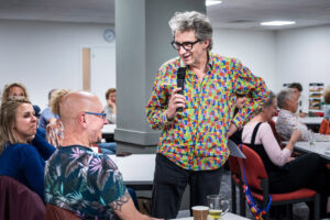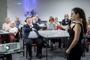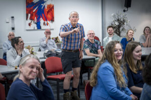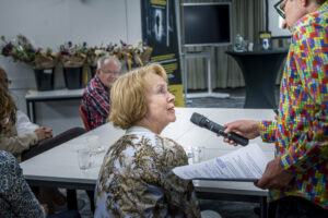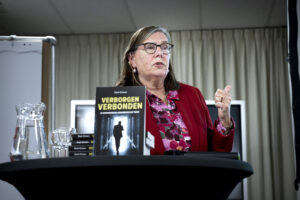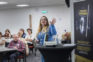 De in 2024 koninklijk onderscheiden Els Leijs nam de aanwezigen mee door de ingewikkelde wijze van DNA-onderzoek en hoe zij met haar collega’s familieleden kan ‘opsporen’.