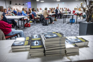 Na de presentatie van de website van Priamos stond er voor iedereen een borrel en hapjes klaar en signeerde Derk Eimers zijn boeken.